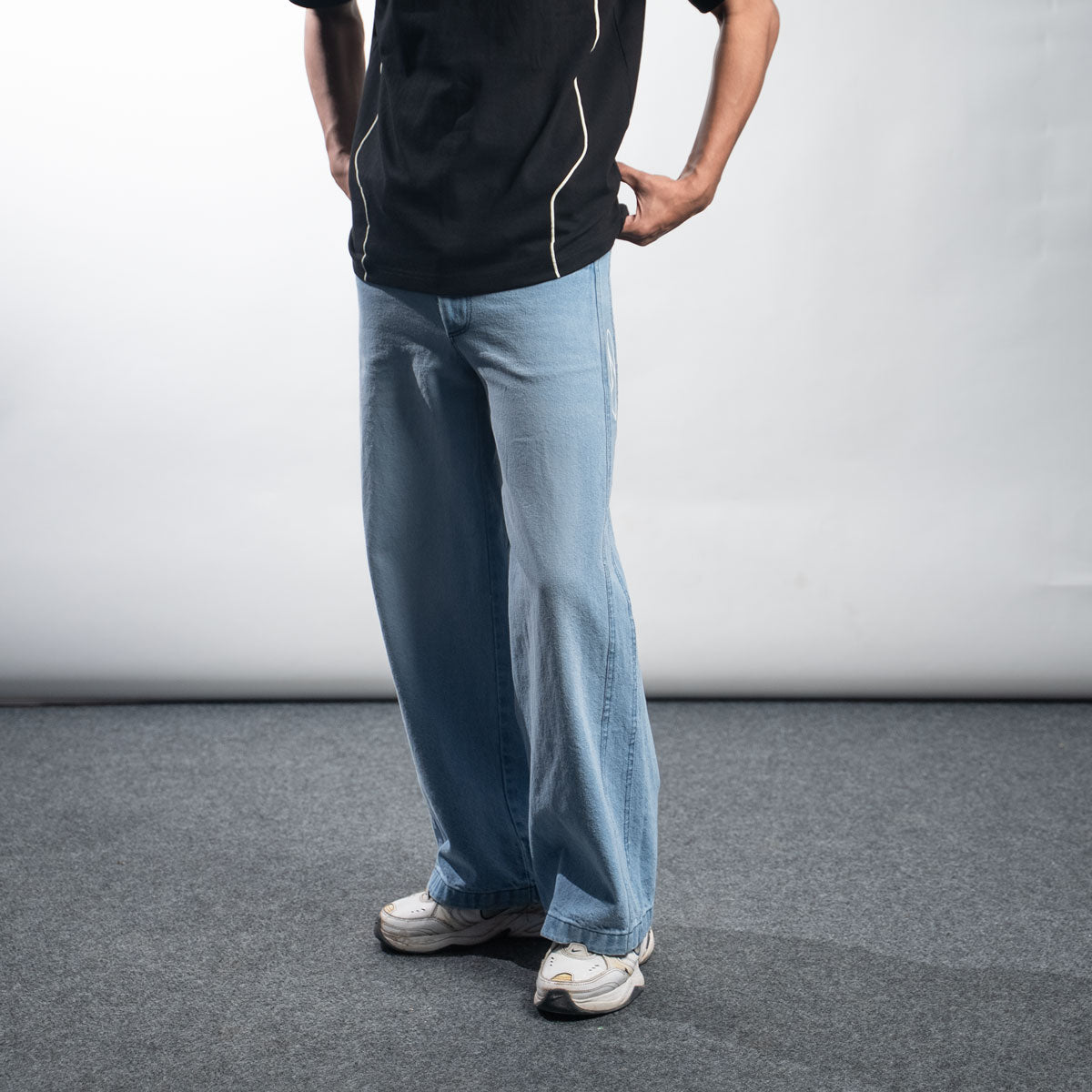 Elevate casual wear with Hault’s Denim Blue Pants. For those who move seamlessly between street and luxury, these wide-fit denims are a staple.